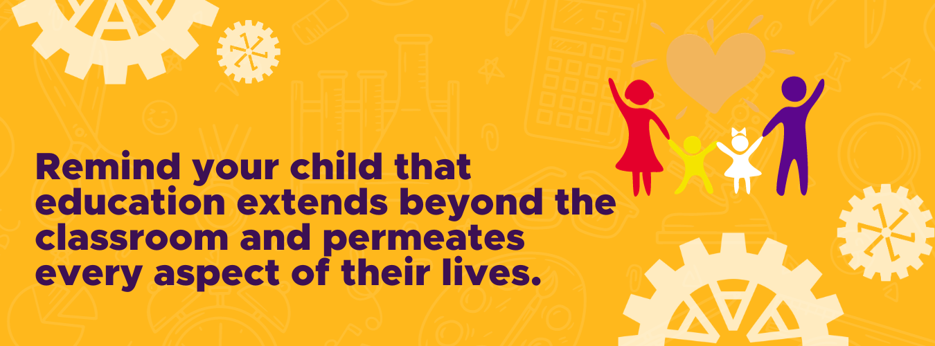 Reinforce with your child that education reaches far beyond the confines of the classroom, influencing every facet of their existence. Motivate them to glean lessons, purpose and significance from diverse experiences. Imbue values like punctuality, creativity and honesty, underscoring their applicability in all aspects of life.